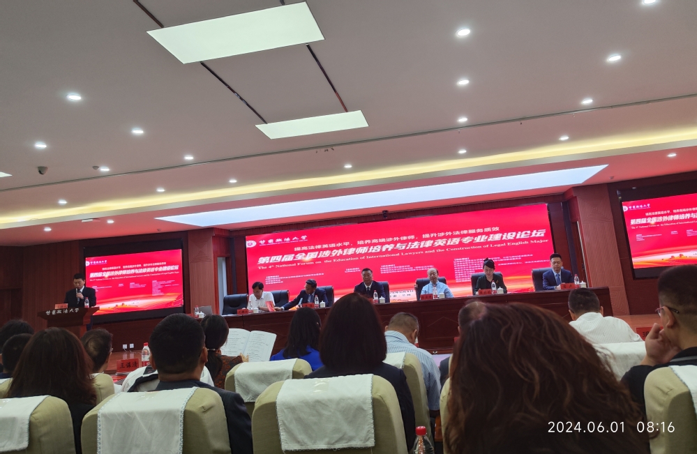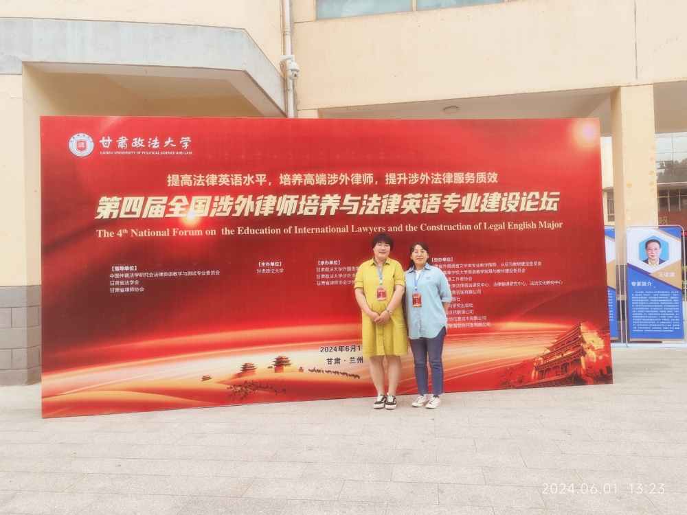 2024年6月1日,“第四届全国涉外律师培养与法律英语学科建设高端论坛”在甘肃政法大学举行。来自清华大学、兰州大学、中国政法大学、华东政法大学、中南财经政法大学、西南政法大学、西北师范大学、广东外语外贸大学等全国十余所高校师生及来自多家律师事务所等代表约200人参加论坛。法学院高菊英老师、葛欣老师参加本次论坛。