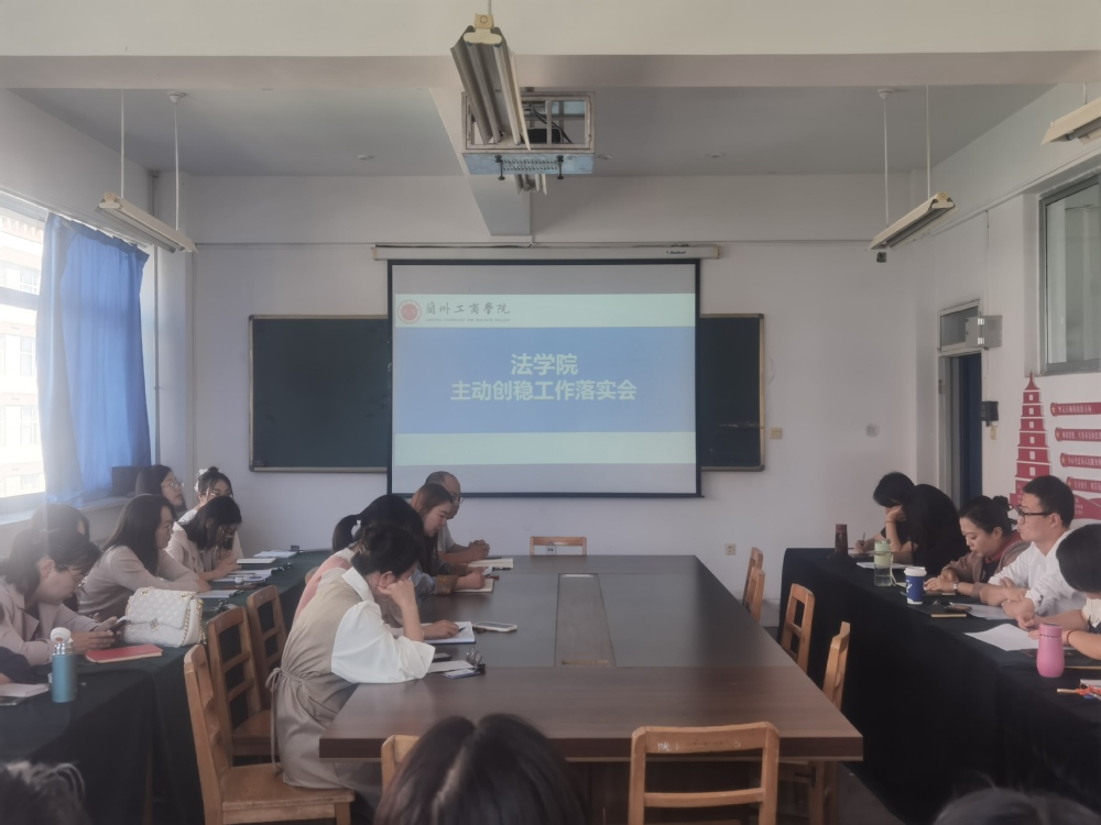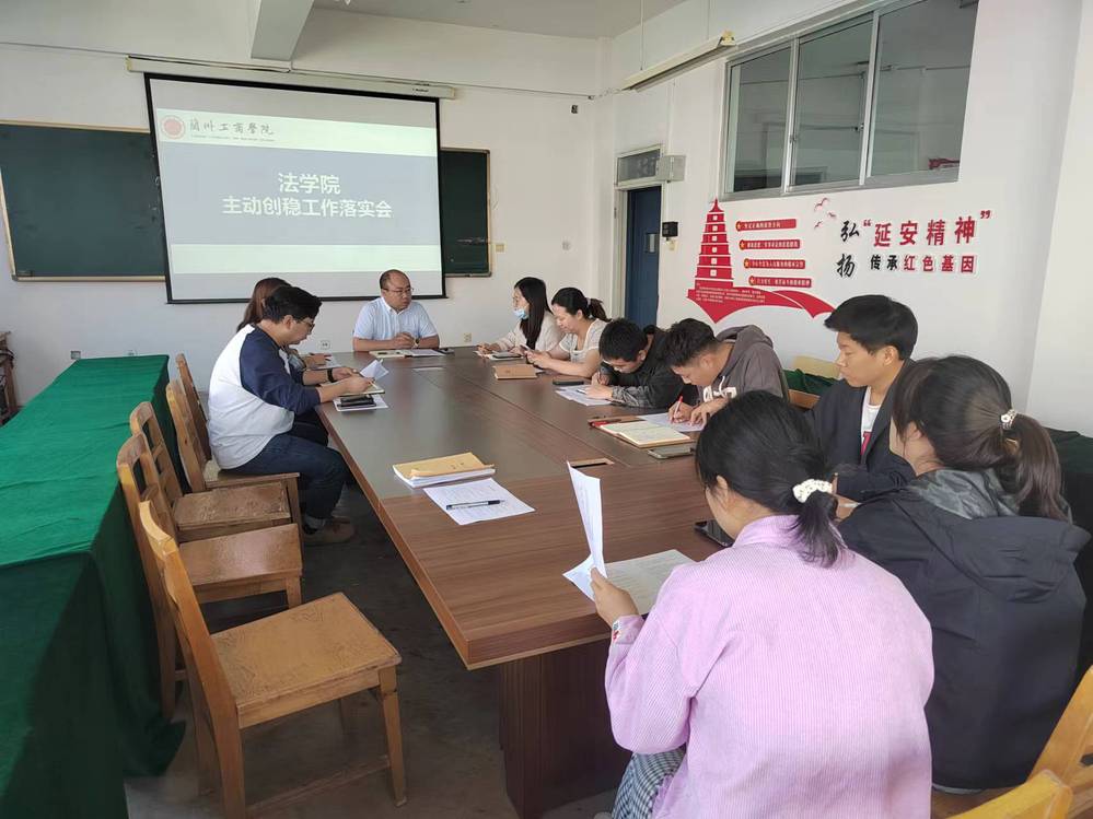 为了更好的落实学校主动创稳工作各项要求,强化安全防范意识,落实安全责任归属,筑牢学院安全稳定基础。9月25日上午,法学院召开法学院主动创稳工作会议。法学院行政院长刘涛、党委副书记赵胐,行政院长助理海文涛,全体辅导员和专职专任教师参加会议。会议由政院长助理海文涛主持。