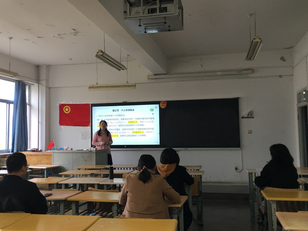 此次活动旨在帮助新教师打磨授课课程,提高教学水平。首先,由新进教师万丽艳老师讲授了《财税法》的课程内容。万丽艳老师以个人所得税法为出发点,通过板书的方式,讲授了该课的重要知识点,并着重分析和解释了相关法律条款。通过相关现实案例,为老师们展现了个人所得税的计税标准、税率以及具体的算法。教学观摩结束后,老师们对万老师授课过程中表现出的授课功底扎实、互动良好等优点给予了充分的肯定,并分享了各自的感受与反思,交流了在教学过程中遇到的困惑,对万老师就课程节奏把控、课件完善等方面提出了改进建议。