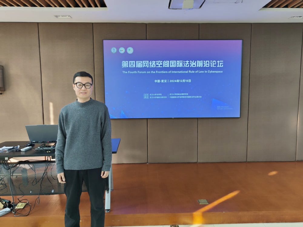 2024年12月15日,由武汉大学法学院、武汉大学网络治理研究院、武汉大学国际法研究所和中国国际法学会网络空间国际法专业委员会联合主办的第四届“网络空间国际法治前沿论坛”在武汉大学法学院举办。来自中国政法大学、外交学院、澳门科技大学、东南大学等高校和科研机构的多名专家学者、青年学子参加论坛研讨,我校李毅老师受邀参加此次论坛。本次论坛旨在推动我国学界及实务部门对于网络空间国际法的研究和重视,为加快提升我国对网络空间的国际话语权和规则制定权建言献策,助力网络空间国际法领域青年学子的成长。