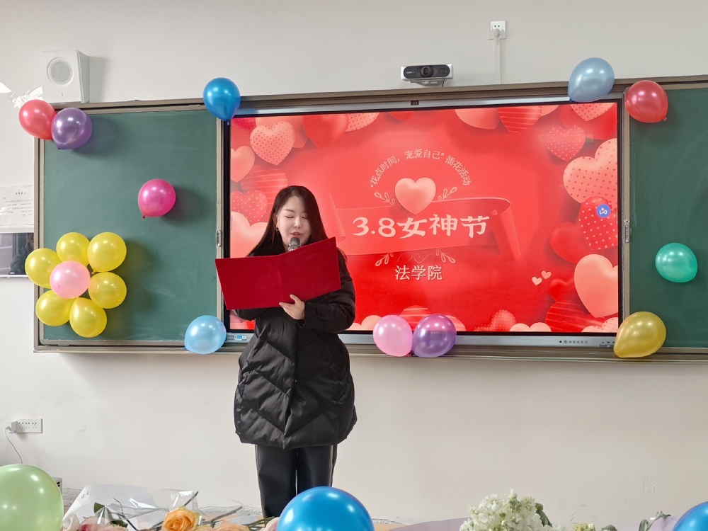 活动启动仪式上,法学院党委副书记赵胐代表学院向全体女教师致以节日问候。致辞中特别解读花材寓意:玫瑰象征教育者的热忱,紫罗兰承载学者的睿智,康乃馨致敬管理者的奉献,通过“以花喻人”的创新形式,向不同岗位的教职工致以个性化礼赞。