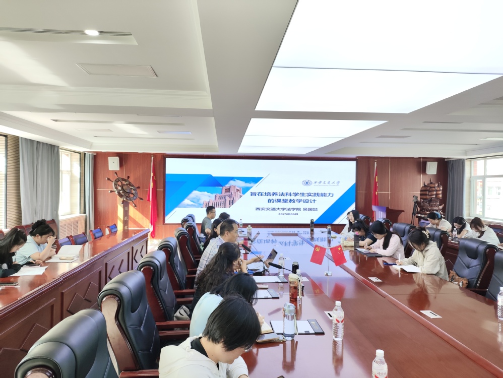 2025年6月30日,西安交通大学法学院吴国喆教授以“旨在培养法科学生实践能力的课堂教学设计”为主题在行政楼第一会议室开展专题讲座。讲座由文法学院教学院长葛欣主持,学院部分师生参加了此次讲座。