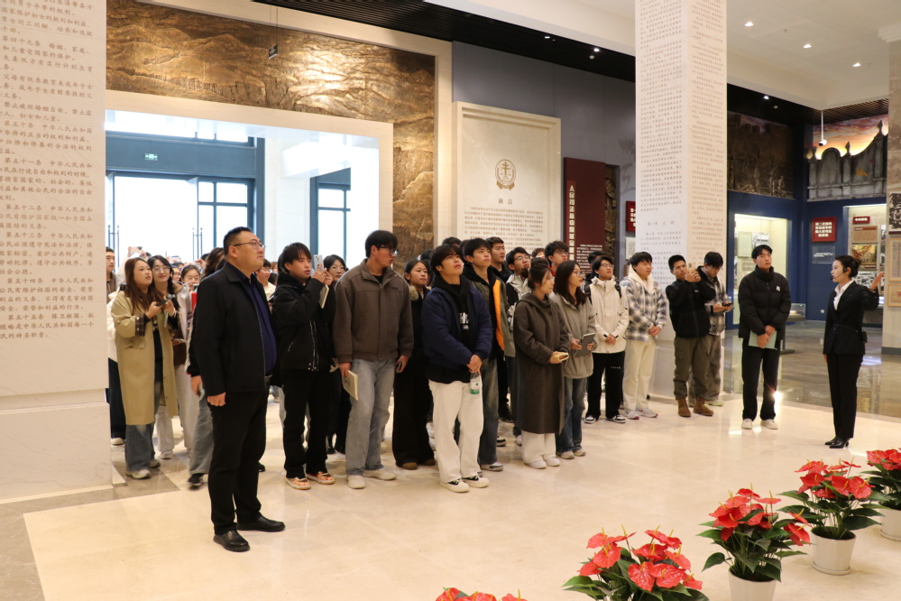 本次实践活动的首站,师生们怀着崇敬的心情参观了马锡五审判方式陈列馆。在庄严肃穆的展馆内,同学们认真聆听讲解、观看历史图片、实物资料及场景复原,全面了解了马锡五同志在陕甘宁边区时期的司法实践。从“封捧儿婚姻申诉案”等经典案例中,同学们真切感受到了“深入调查研究、调解与审判相结合、方便群众诉讼、全心全意为人民服务”的马锡五审判方式的核心精髓。一件件珍贵的实物、一幅幅生动的图片,仿佛将大家带回了那个烽火连天却又充满司法温情的年代,使同学们对人民司法优良传统的形成与发展有了更为直观和深刻的理解。