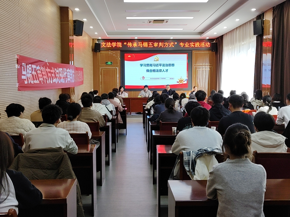 11月1日下午,全体师生齐聚一堂,认真听取了一场题为《学习贯彻习近平法治思想,做合格法律人才》的专题讲座。讲座深入浅出地阐释了习近平法治思想的时代背景、核心要义与实践要求,强调了坚持党的领导、坚持以人民为中心的根本立场。主讲人结合马锡五审判方式所蕴含的群众路线精神,引导同学们思考如何在新时代将习近平法治思想内化于心、外化于行,努力成长为德才兼备的高素质法治人才。讲座内容高屋建瓴又紧贴实际,引发了同学们的广泛共鸣和深入思考,现场学习氛围浓厚。