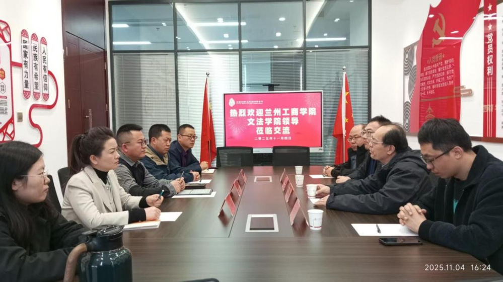 为深化产教融合、推进校企合作,进一步拓展学生实习实践与就业渠道,11月4日,文法学院教学院长郑天锋、党委书记花彤、行政院长刘涛及毕业班辅导员王行岩一行,赴北京京师(兰州)律师事务所洽谈合作事宜,并达成初步合作意向。