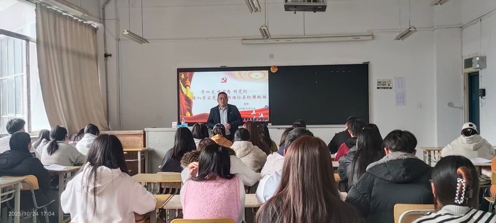 近日,文法学院第72期入党积极分子培训班正式开班,学院党委书记花彤同志以《学四史·悟思想·明党纪——深入学习党的创新理论与纪律规矩》为题,为全体学员讲授专题党课。