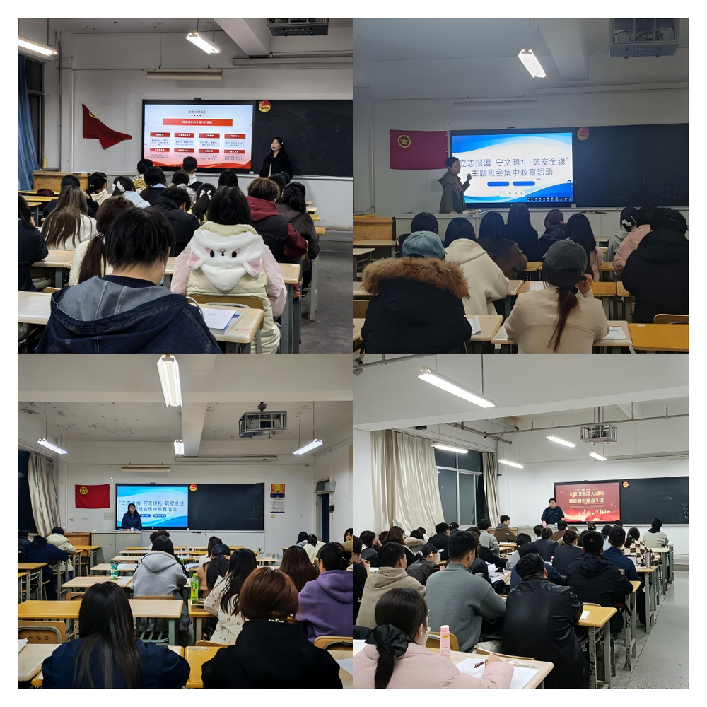 在“立报国强国大志向 做挺膺担当奋斗者”学生思想政治教育环节,辅导员紧扣“强国复兴有我”这一主线,引导学生将个人理想融入国家发展大局。在学生校园文明素养教育方面,各辅导员围绕“尊师重教、无烟校园、文明交往”三大要点,发起“见到老师主动问好”的倡议,倡导垃圾不落地、宿舍卫生及时打扫,使文明成为文法学子的自觉习惯。针对冬季安全教育,班会聚焦冬季安全风险,剖析近期高校火灾案例,重申“人走断电、严禁大功率电器”等安全规范。在强政治安全与意识形态安全教育环节,辅导员们通过案例分析和政策解读,强化学生的政治敏锐性和鉴别力,引导学生树立正确的世界观、人生观、价值观,筑牢思想防线,确保校园政治安全稳定。
