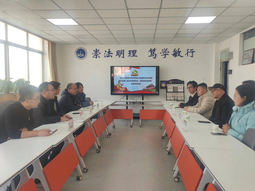 为深入学习习近平法治思想,促进党建与专业实践深度融合,切实推进普法宣传教育,12月4日,文法学院教工党支部与兰州市律师行业第二联合支部委员会联合举办“普法宣传进校园”主题党日活动。文法学院教工党支部全体成员参与,活动由党委书记花彤主持。