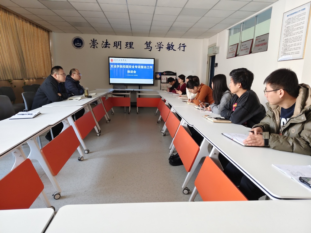 为深入贯彻落实学校对于安全稳定工作的要求,进一步强化学院安全管理工作,12月5日,文法学院在3号教学楼413会议室召开校园安全专项整治工作推进会。党委书记花彤、行政院长刘涛、党委副书记李毅雄、办公室主任唐艳瑢以及全体辅导员老师参加了此次会议。