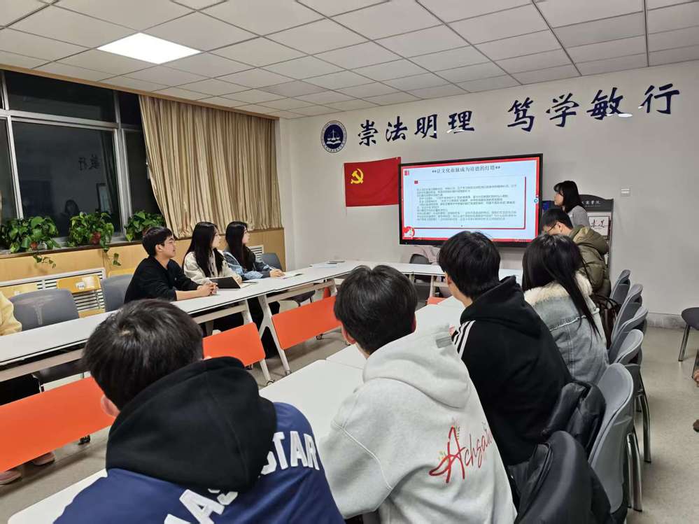 为深入贯彻习近平总书记关于“五个进一步到位”的重要指示精神,持续推动党的自我革命向基层延伸,切实提升基层党组织的凝聚力、组织力与战斗力,12月11日,文法学院学生第二党支部与经济学院学生第八党支部联合开展“树立良好风尚、增强文化自信”专题联建活动。两支部全体党员共同参与,通过专题学习、互动交流、实践分享等丰富形式,聚力探讨新时代道德建设与文化自信培育的实践路径。