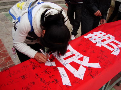 二0一0年三月三十一日,兰州商学院陇桥学院工商管理系团总支在学院食堂门口举行了“情系西南,杜绝浪费水资源”活动图片展,同时也开展了千人志愿节约用水的签名活动。