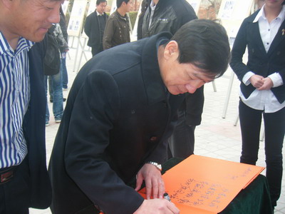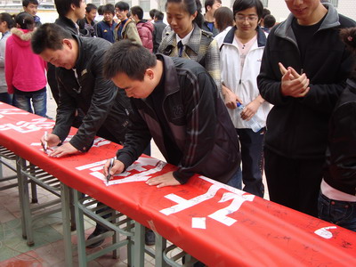 本次活动从12:00到13:30,在学院领导的支持下,在全院师生的共同参与下,在工商管理系团总支和学生会的共同努力下,活动取得了巨大的成功。经过我们的宣传,全院的师生积极响应我们的倡议,在写着“保护,让细水永不止尽;浪费,让倒影成为回忆”的12米的宣传条幅上签下自己的姓名,志愿在以后的生活中将节约用水从一点一滴做起。