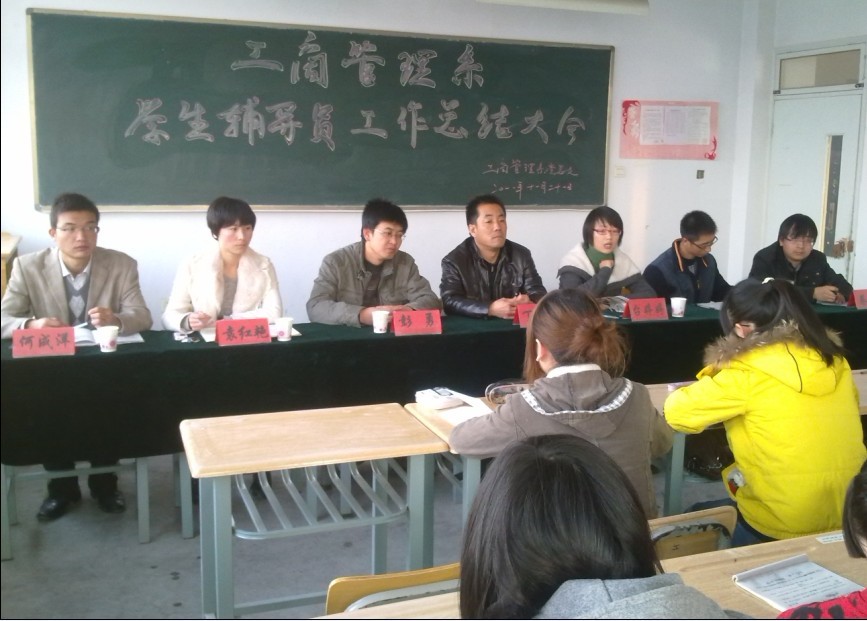 最后,丁书记对整个会议和大家的工作进行了总结,他首先肯定了大家前一段时间的工作,同时对所有学生辅导员提了几点希望:一是要扮演好角色。一方面大家是学生,另一方面又是学生辅导员,如何协调和二者的关系至关重要。二是“严、细、实、快”。要严格管理,工作要细心,任务落到实处,不能拖落。三是要协调好学习与工作。既要搞好学习,系里和辅导员老师安排的工作也要坚决贯彻落实。