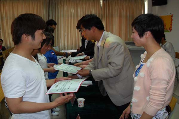 会上,台婷婷副书记宣读了学院《关于表彰党校第四十五期入党积极分子培训班优秀学员的决定》文件,系领导、老师分别为结业学员代表和“优秀学员”颁发了党校结业证书与荣誉证书。随后,2011级市场营销班董建军同学,代表本期培训班的入党积极分子做了的发言,畅谈了自己参加党校培训学习的所学所感,他的培训感言赢得了与会学员的热烈掌声。