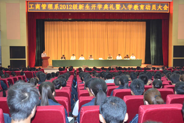 又是一年金秋景,播洒希望寄深情。9月3日晚,工商管理系在学术报告厅举行了2012级新生开学典礼暨入学教育动员大会。系主任李金峰、党总支书记张计强、党总支副书记兼行政副主任罗勇等系领导和老师出席大会,2012级新生670余名同学参加大会。大会由罗勇副书记主持。