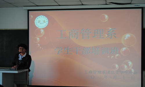 3月21日下午,工商管理系举行了系学生干部培训班第三场讲座,邀请了我系2005级优秀毕业生代表、浙江贝因美科工贸股份有限公司兰州分公司市场部经理袁蕾主讲“学生干部与个人的成长成才”。