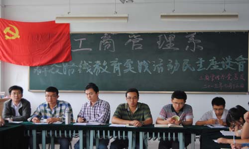 7月13日上午,为认真贯彻学院深入开展党的群众路线教育实践活动动员大会精神,将我系学生思想和行动统一到学院党委要求和部署上来,工商管理系党总支举行了群众路线教育实践活动学生代表座谈会。