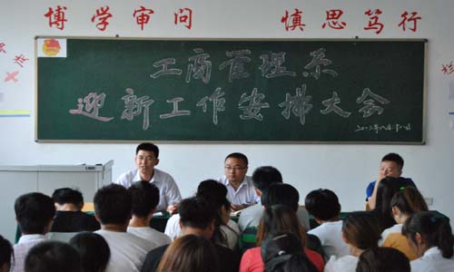 为了深入贯彻落实学院迎新工作会议精神,确保迎新工作有序开展,8月28日下午六点,工商管理系于工管楼107教室召开了关于做好2013年迎新工作的安排大会。系党总支副书记张勇出席会议,团学干部、学生党员等负责迎新的工作人员参加了此次大会,会议由团总支书记彭勇主持。