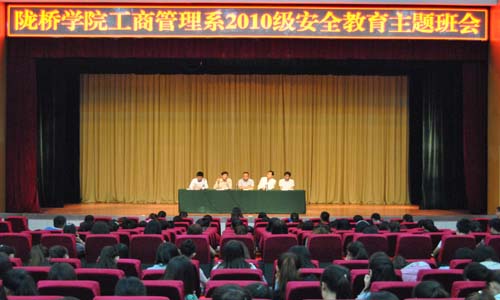 9月16日晚,工商管理系在学术报告厅举行了2010级毕业生安全教育主题班会,系有关领导出席了会议,2010级全体学生参加了大会。
