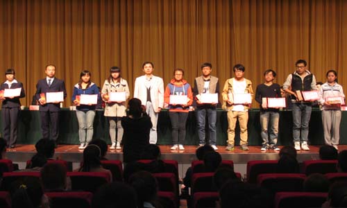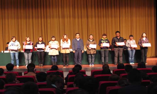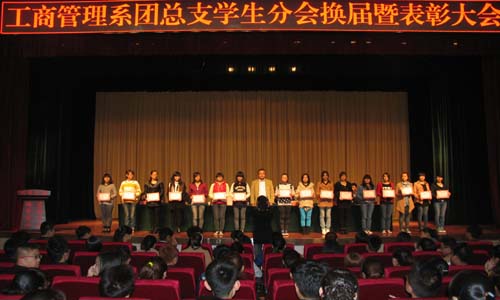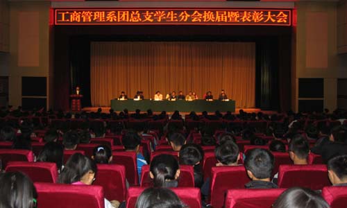 大会在雄壮的国歌声中开始,第十二届系学生分会常务副主席徐建鑫同学做工作报告,回顾和总结了上届团学各项工作;系党总支副书记罗勇宣读了工商管理系关于表彰2013年迎新晚会“优秀表演者”、先进工作者和优秀学生干部的决定;李金峰主任、张勇副书记和张计强处长分别为获奖学生颁奖。会上,张勇副书记宣读了关于新一届团学主要干部任免的决定。新一届团学干部代表任娇同学发言,表示将一定不辜负全系师生的重托,坚持服务同学和成长成才目标,锐意进取,争创一流,全面推进我系团学工作。李金峰在讲话中,希望全体牢固树立奉献意识和团结意识,积极广泛地组织同学们参加各项团学活动和实践,为同学们成长成才搭建舞台、创造条件,不断增强团学组织的影响力和凝聚力。