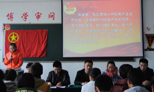 团徽引领人生路,青春无悔筑梦想。11月11日中午,工商管理系在慎思楼107教室举行了2013年度新团员入团宣誓仪式,系党总支副书记罗勇、团总支书记彭勇参加大会,43名新加入共青团的团员进行了入团宣誓。