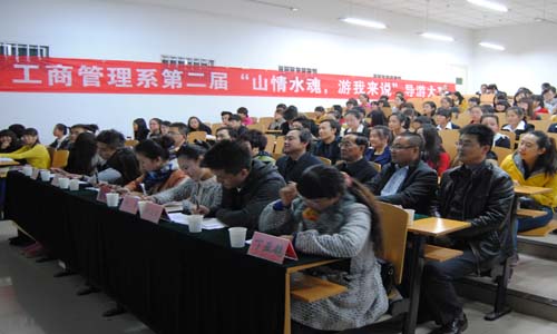 已连续举办两届的工商管理系“山情水魂,游我来说”导游大赛,增强了学生专业学习的积极性,加深了本专业学生对导游业务的熟悉,为学生提供了一个展示自我提升能力的平台,现已成为我系落实学院创新创业教育和人才质量培养工程的重要活动载体之一。