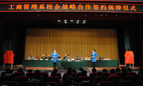 仪式上,兰州毅德商贸城有限公司巨丁经理和工商管理系李金峰主任分别发表了热情洋溢的致辞,对双方举行校企战略合作,今后实现资源共享和合作共赢寄予美好希望。燕宏助理代表学院发表讲话,希望工商管理系和兰州毅德商贸城有限公司这样实力雄厚影响较大的一流企业积极探索校企战略合作模式新道路,不断充实双方在商贸物流开发和运营事业中理论和实践相结合的内涵,带动双方的各项事业实现新的突破,并在以后的战略合作中,真正实现双方资源共享、互惠双赢,培养出大量基础厚、素质高、能力强的应用型专门人才。随后,举行了战略合作签约仪式,兰州毅德商贸城有限公司副总经理张建辉和学院党委副书记、副院长李玉仓分别为双方建立的学生实训基地和人才培养基地揭牌。