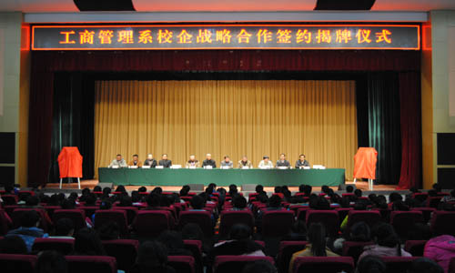 仪式上,兰州毅德商贸城有限公司巨丁经理和工商管理系李金峰主任分别发表了热情洋溢的致辞,对双方举行校企战略合作,今后实现资源共享和合作共赢寄予美好希望。燕宏助理代表学院发表讲话,希望工商管理系和兰州毅德商贸城有限公司这样实力雄厚、影响较大的一流企业积极探索校企战略合作模式新道路,不断充实双方在商贸物流开发和运营事业中理论和实践相结合的内涵,带动双方的各项事业实现新的突破,并在以后的战略合作中,真正实现双方资源共享、互惠双赢,培养出大量基础厚、素质高、能力强的应用型专门人才。随后,举行了战略合作签约仪式,兰州毅德商贸城有限公司副总经理张建辉和学院党委副书记、副院长李玉仓分别为双方建立的学生实训基地和人才培养基地揭牌。