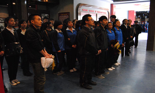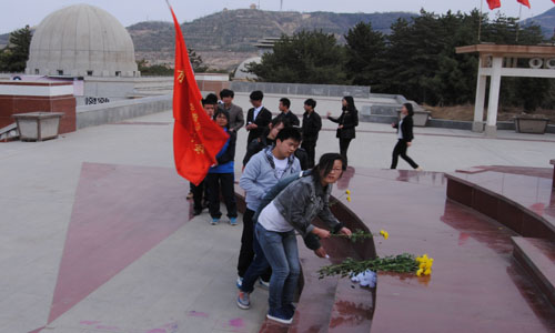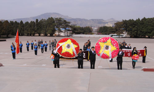 在肃穆的烈士纪念碑前,大家举行了庄严的纪念仪式,学生党员代表王一江同学深情发言,追述了革命烈士的丰功伟绩,表示一定要继承先烈遗址,弘扬烈士精神,积极进取,努力使自己成长成为一名合格的接班人;随后,在两名主持人的带领下,大家重温入党誓词,庄严宣誓,并绕烈士纪念碑一周,敬献白花。仪式结束后,全体党员代表参观了兰州战役纪念馆。