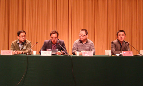 会上,系党总支书记张计强宣读了学院《关于2014-2015学年大学生科技创新项目立项的通知》和工商管理系《关于成立2014-2015学年大学生科技创新项目立项工作领导小组及安排的通知》文件;袁明海副主任重点强调了作为当代大学生,掌握一定的科技知识,拥有过硬的创新能力和实践能力的重要性,希望同学们珍惜和利用好这一展示实践技能、交流成果的平台;孙振兴副主任就科技创新项目如何立项申报做了详尽的介绍。