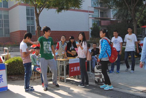 “车来了,我们快去接新生!”一个声音打破了暂时的沉寂,在迎新点休息的工作队员们迅速地站了起来,高举起一块块红色的牌子“工商管理系”,使从校车上下来的茫茫新生一眼就能找到自己的“家”。“同学,请跟我走!”志愿者们一边帮忙拉行李,一边给新生讲解注意事项。“工商管理系的热情接待让我们感到很温暖,你们的服务太周到了,把孩子交到你们这我非常放心”一位河南的新生家长说道。