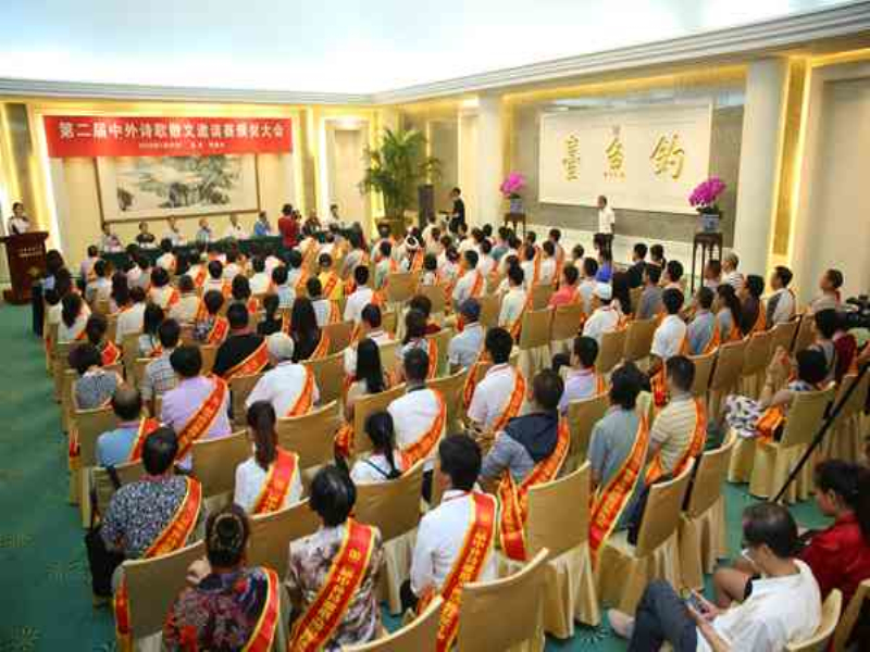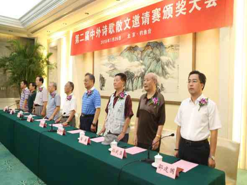 7月25日,第二届中外诗歌散文邀请赛颁奖大会在钓鱼国宾馆隆重召开,全国政协、北京军区、中国散文学会、人民日报社、中国作家协会、中华散文网等部门和团体的相关领导和专家出席了颁奖大会,全国各地及澳大利亚、德国、美国的诗歌散文作家120多人参加大会。