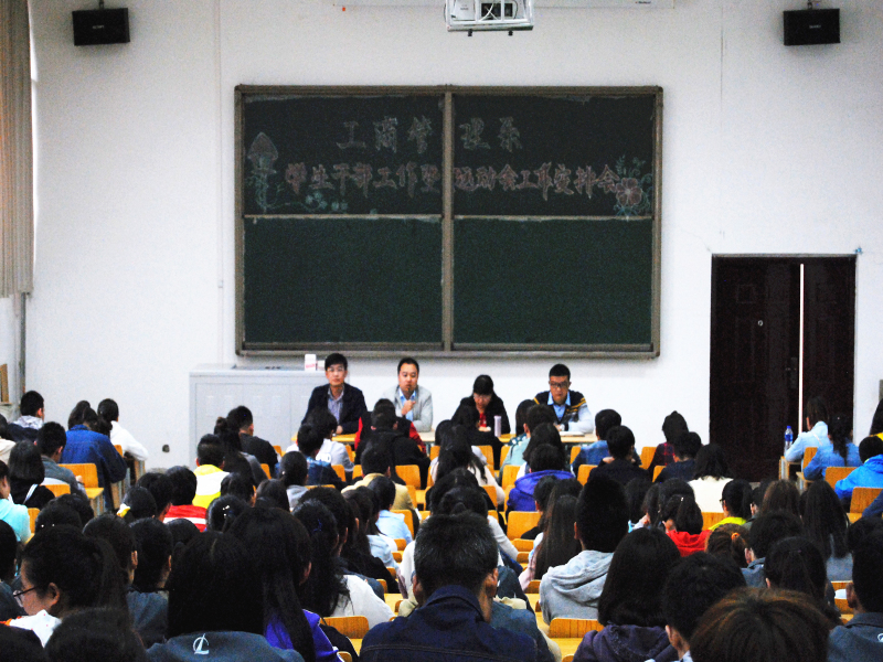 为增强学生干部的自律意识,有准备地迎接学院第十四届体育运动会的到来,工商管理系于4月20日下午在学术报告厅101教室召开了学生干部工作暨运动会工作安排大会。系主任丁亚鸽、系党总支书记康昱明、系团总支书记彭勇、党政秘书何成洋、系团学全体成员以及我系大一至大三各班班团委主要干部参加了此次会议。会议由工商管理系团总支书记彭勇主持。