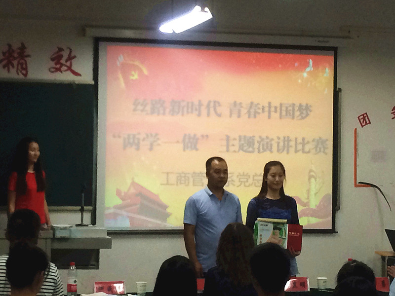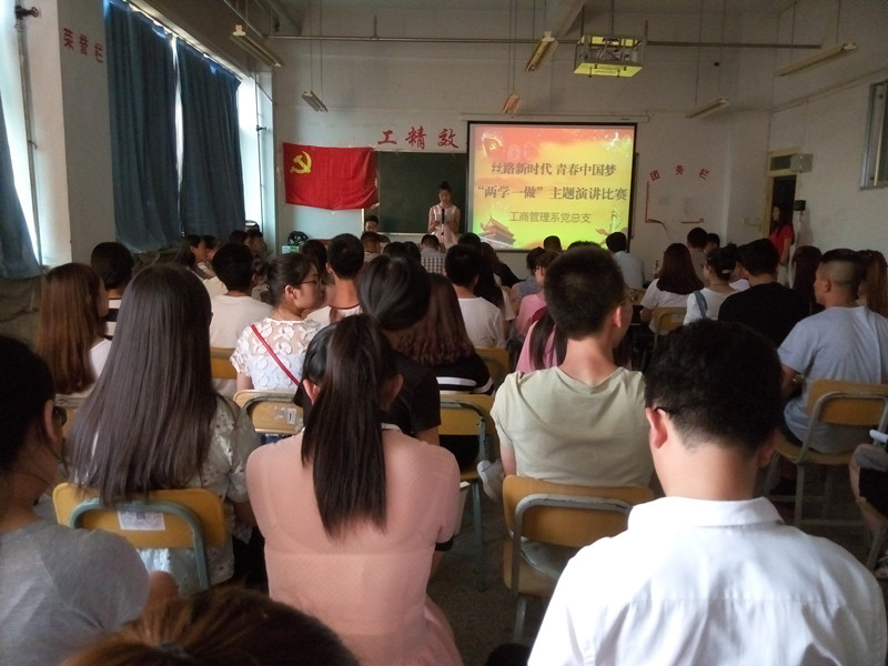 为深入推进我系“两学一做”学习教育活动深入开展,提高全系学生党员的思想觉悟和综合素质,工商管理系党总支于6月19日下午在明辨楼606教室举行了“丝路新时代、青春中国梦”两学一做主题演讲比赛,系党总支书记康昱明、各学生支部书记及全体学生党员观看了比赛。