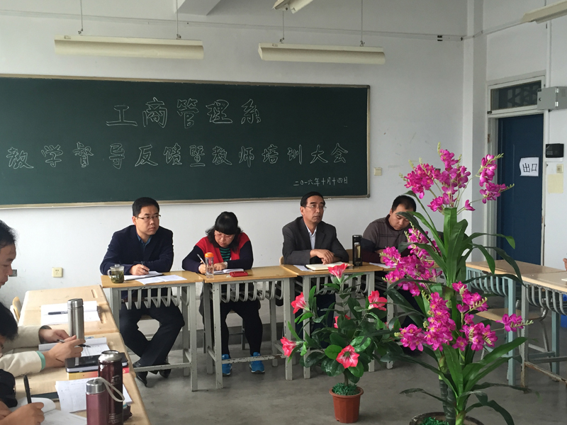 10月14日我系在3号教学楼413召开“工商管理系教学督导反馈暨教师培训大会”。会议由丁亚鸽副主任主持,教学总监王生林教授和我系全体教师参加了会议。