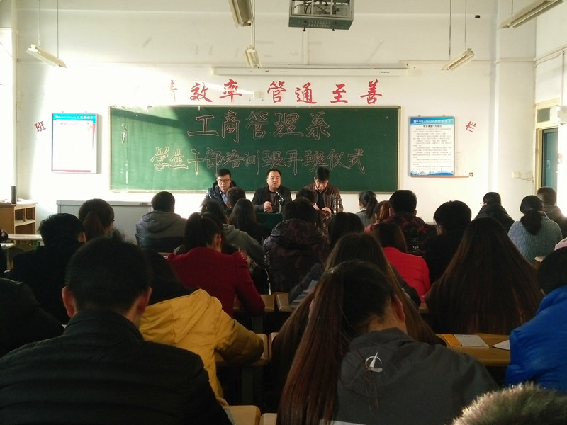 为树立学生干部良好作风,提高团学干部的思想政治素养和工作能力。工商管理系于11月30日至12月29日成功举办学生干部培训班。就业指导中心主任梁磊、工商管理系党总支书记康昱明、副主任孙振兴、党政秘书何成洋为其做了全面培训。工商管理系党团学副部长以上学生干部及2014、2015、2016级各团支部书记、班长共80余人参加培训。培训由团总支书记彭勇全面负责。