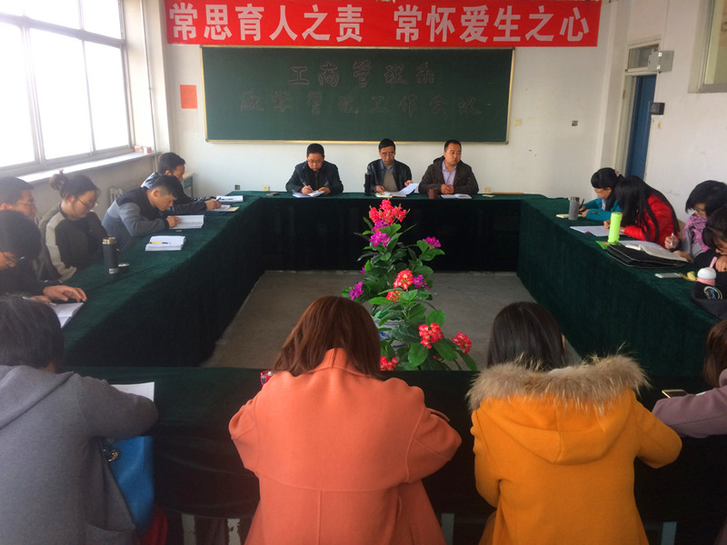 3月6日下午,工商管理系在3#413教室召开了新学期教学管理工作会议,就本学期的相关工作进行了安排和部署。学院管理学科教学总监王教授应邀出席会议,工管系全体教师参加了会议。本次会议由系教学副主任孙振兴主持。