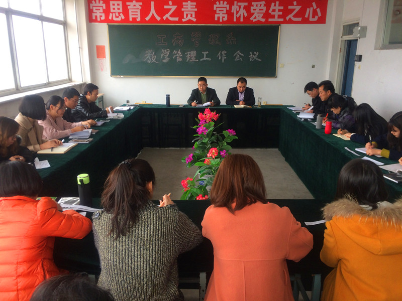 3月24日下午,工商管理系召开了本学期教学、管理工作推进会,总结了开学三周以来我系教学运行、学生管理工作,并对本学期后续相关工作进行了安排和部署。我系全体教师参加了会议,会议由系教学副主任孙振兴主持。