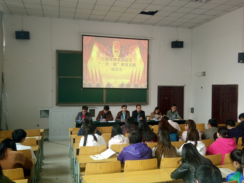 按照学院团委《关于开展“学习总书记讲话 做合格共青团员”教育实践的通知》(陇桥团发〔2017〕1号)文件精神,我系团总支于4月13日下午在学术厅101召开了工商管理系“一学一做”教育实践动员大会。学院团委副书记杨鹏、工商管理系党总支书记康昱明、党政秘书刘霞出席会议,工商管理系全体学生干部,各团支部成员及团员代表共200余人参加动员会。会议由团总支书记彭勇主持。