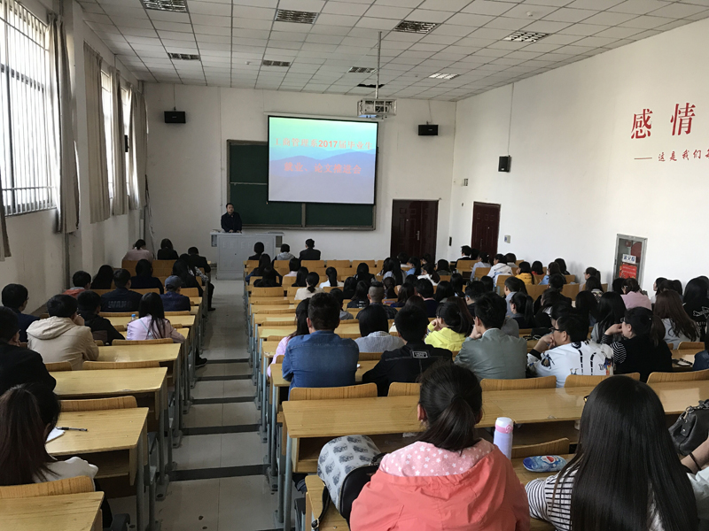 近日,工商管理系在学术厅101召开了2017届毕业生就业工作和毕业论文指导工作推进会。系党总支书记康昱明,副主任孙振兴出席了会议,我系毕业班辅导员李菲、魏巍、刘霞三位老师以及2017届在校毕业生参加了会议。会议由康昱明书记主持。