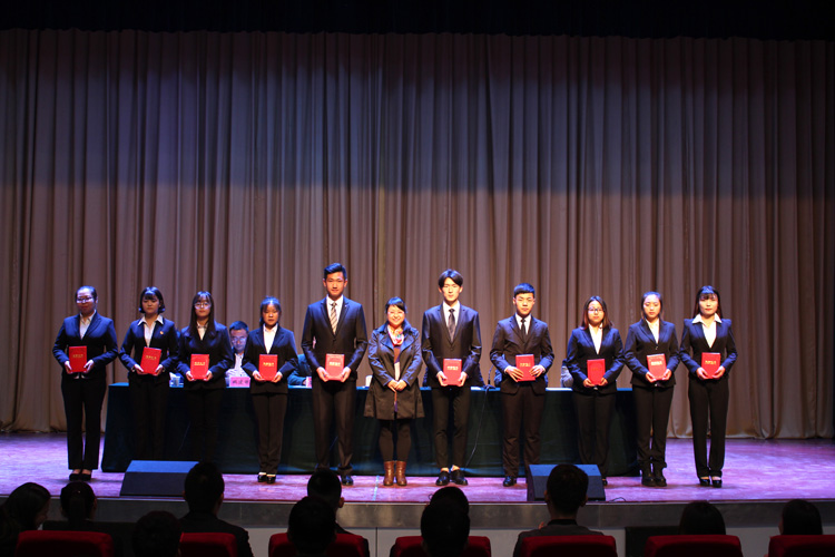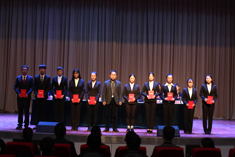 会上,宣读了表彰决定及学生党支部、团总支、学生会换届、学生辅导员聘任等有关文件;与会领导为获奖同学颁发了荣誉证书和奖品,为受聘学生颁发了聘书。“优秀学生干部”获得者韦甜芳同学代表全体受表彰学生作了发言,新一届学生干部代表、学生分会主席达得鹏同学代表新任学生干部做了表态发言。