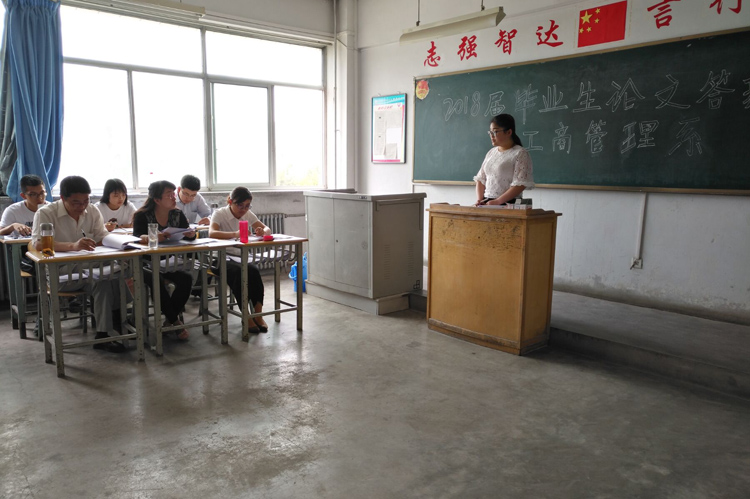 答辩会从上午8:30正式开始,为严肃答辩纪律,各组工作人员进行了考勤,各答辩组组长宣读了答辩程序和答辩要求。答辩过程中,答辩组老师对答辩学生的毕业论文进行了认真审阅,从基本格式、观点论述、学术价值、专业人才培养,以及论文在实践中的应用等方面进行了综合评价。答辩学生在规定时间内就选题的缘由、研究内容和方法、研究结论、实践应用以及研究的不足和改进之处等方面进行了详细的陈述,并对答辩老师提出的问题进行了认真回答,现场气氛活跃,秩序井然。