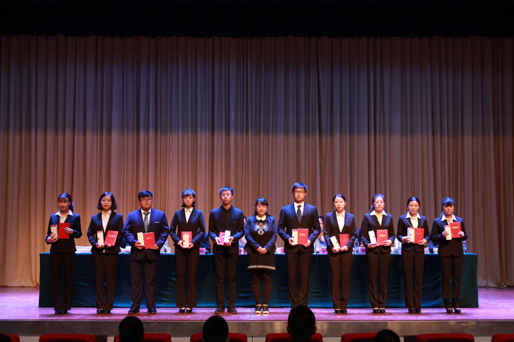 会上,系团总支副书记童娇娇同学代表团学组织作了2017年度团学工作总结,学生会主席达得鹏同学代表团学组织作了第十六届运动会总结;系副主任丁亚鸽副教授宣读了系团总支《关于表彰“先进团支部”“优秀共青团干部”“优秀共青团员”的决定》,副主任孙振兴副教授宣读了《关于表彰“优秀运动员”“先进工作者”的决定》;系领导为受表彰的集体和个人颁发了奖牌、荣誉证书及奖品;优秀共青团干部南苗苗同学及优秀运动员张蕊同学分别代表获奖学生作了发言。