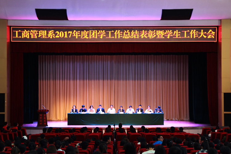 为总结2017年共青团工作,进一步推动团学组织在我系各项工作中发挥积极作用,我系于5月22日下午在学术厅召开了工商管理系2017年度团学工作总结表彰暨学生工作大会。系领导、全体辅导员、学生干部及各年级学生代表共800余人参加了此次会议,会议由团总支书记姚建刚主持。