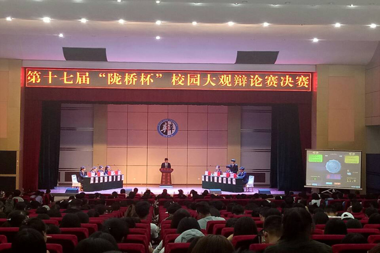 2018年5月30日晚,由学院团委主办、学生会承办的第17届陇桥杯校园大观辩论赛在学生报告厅精彩落幕。部分系部领导、团委老师、团总支书记和学院800余名学生观看了比赛。