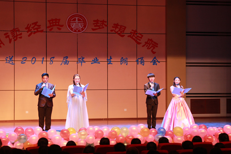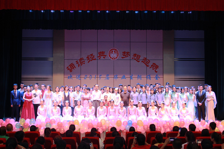 6月26日晚,我系团总支学生会在学术厅举办了“诵读经典 梦想起航”欢送毕业生朗诵大会。学院院长路文江教授、副院长高军老师、系党总支书记康昱明、系主任丁亚鸽、副主任孙振兴及部分老师应邀一同观看。