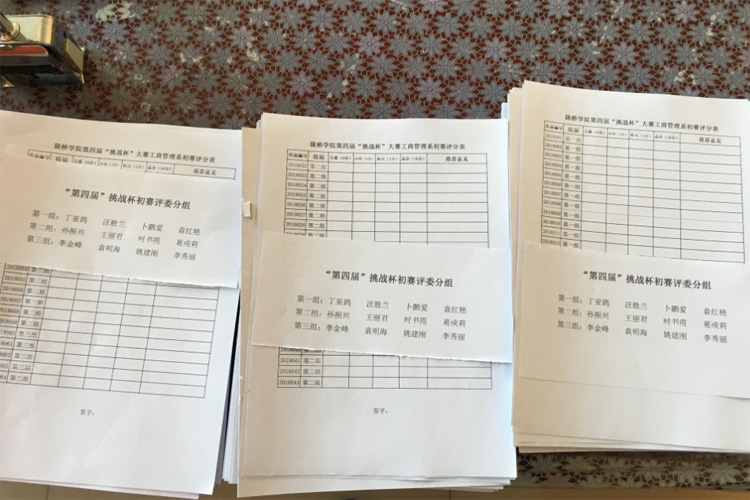11月22日下午,我系在3号教学楼413教室举行了学院第四届“挑战杯”工商管理系初赛作品评审会。本次评审工作由系领导牵头,教研室主任、辅导员、老师参与,12名教师分3组对全系75件作品进行了客观、严格、公平、公正的筛选。