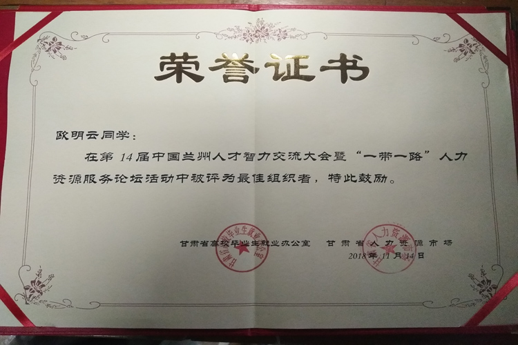11月23日下午,省人力资源市场联合陇桥学院在学术报告厅隆重举行了第14届中国兰州人才智力交流大会暨“一带一路”人力资源服务论坛优秀志愿者表彰大会。