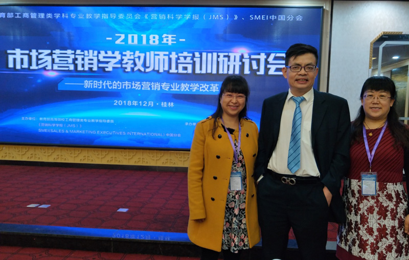 为了进一步加强高等学校本科营销学类教学工作、提升教学、科研和学科建设水平、打造精品课程,由教育部工商管理教学指导委员会、《营销科学学报(JMS)》、SMEI(Sales & Marketing Executives International)中国分会联合主办,清华大学出版社、桂林理工大学商学院承办的“市场营销学教师培训研讨会--新时代的市场营销专业教学改革”教师培训研讨会于2018年12月1日-2日在广西壮族自治区桂林市举行。来自全国各地70多所高校的110多位老师参加了会议。我系丁亚鸽主任带领王丽君老师前往学习,并参观了桂林理工大学商学院功能实验室。