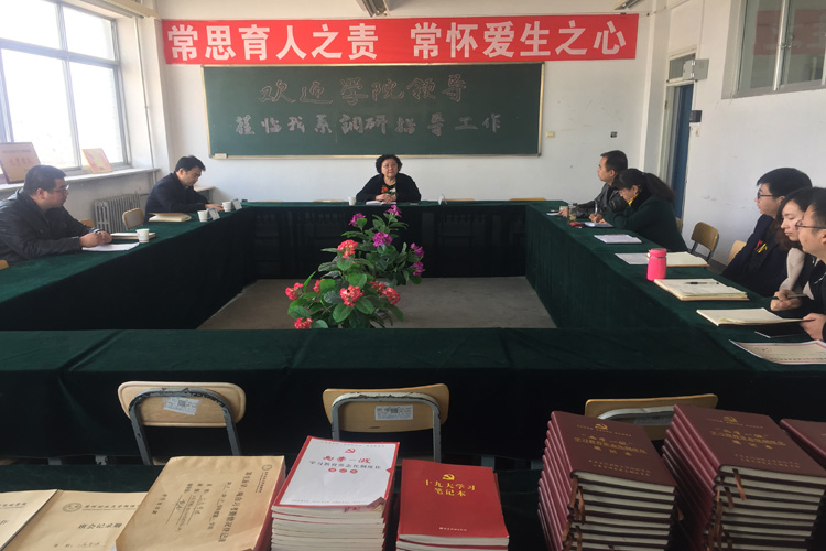 根据学院党委工作安排,3月15日上午,党委书记王新兰,党委副书记、副院长马义哈,党委副书记郇东及党委工作部负责同志一行来我系开展党建和思想政治工作调研。我系领导班子、辅导员参加了调研会。